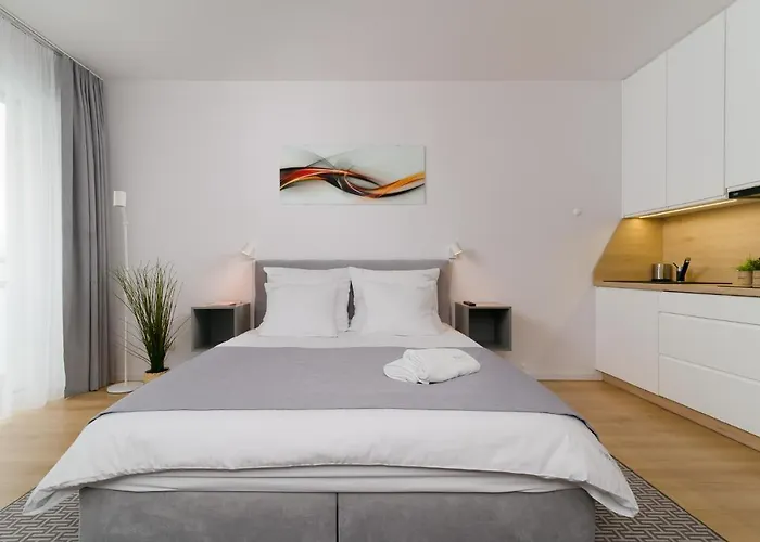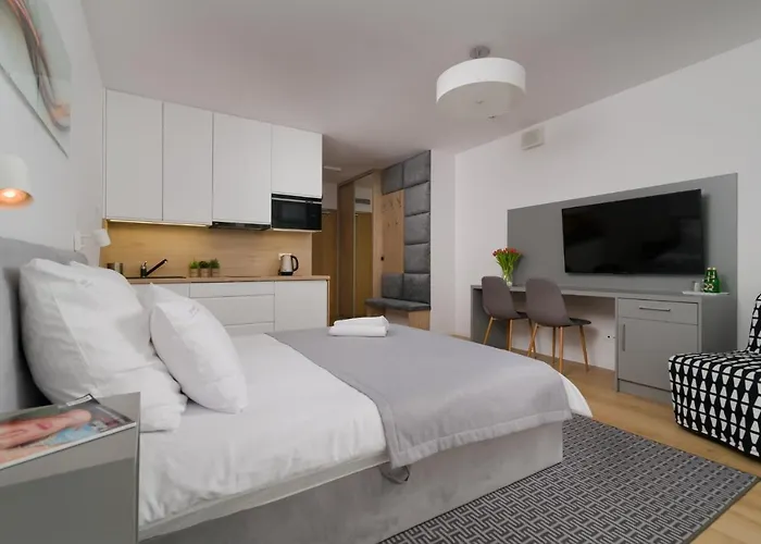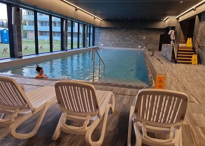 This apartment boasts a kitchenette equipped with a microwave, an electric kettle, and a fridge. The nearest restaurant is GRIN bistro & cafe, which serves European food, located within short walking distance of the accommodation. The use of a Jacuzzi, a sauna, and an indoor pool can contribute to a more enjoyable stay. Sport activities such as cycling are available for guests.